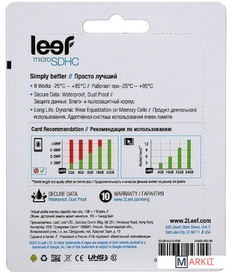 Markit » Карты памяти » Карта памяти Leef microSDHC (Class 10) 32GB (LFMSD-03210R)