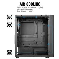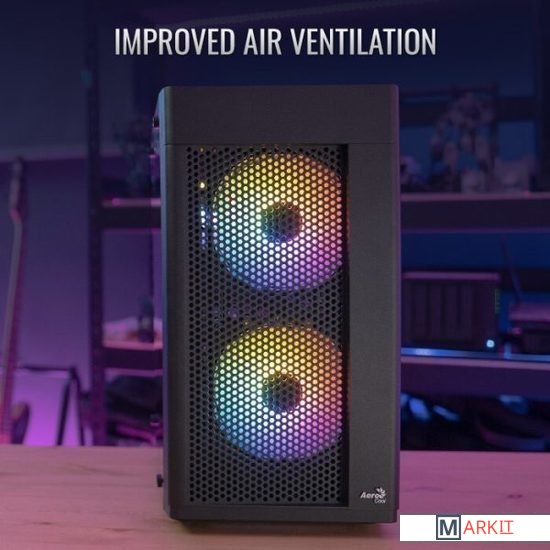 Этот высокопроизводительный корпус формата Mini-Tower создан с учетом вентиляции и предоставляет качественный воздушный поток, пока вы наслаждаетесь подсветкой вентиляторов на передней панели. Боковая панель из закалённого стекла позволяет рассмотреть все компоненты системы. Поддерживает установку системы жидкостного охлаждения в передней и задней части корпуса для увеличения эффективности охлаждения.Передняя панель с вентиляционными отверстиями увеличивают поток воздуха и улучшают вентиляцию, обеспечивая возможность видеть передние вентиляторы с подсветкойОборудован боковой панелью, полностью выполненной из закаленного стекла, для демонстрации внутренностей системыПоддерживает использование жидкостного охлаждения в передней и задней части корпусаПоддерживает установку вентиляторов на верхней, передней и задней панеляхПоддержка процессорных кулеров высотой до 159 ммПоддержка видеокарт премиум-класса длиной до 296 мм (без переднего радиатора)