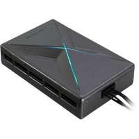Освещение и скорость вращения вентилятора контролируются централизованно с помощью прилагаемого блока управления (магнитное крепление), к которому можно подключить до семи дополнительных вентиляторов X12, которые доступны отдельно. Эффектами RGB можно управлять либо через пульт дистанционного управления, либо через 5V 3pin RGB-коннектор.