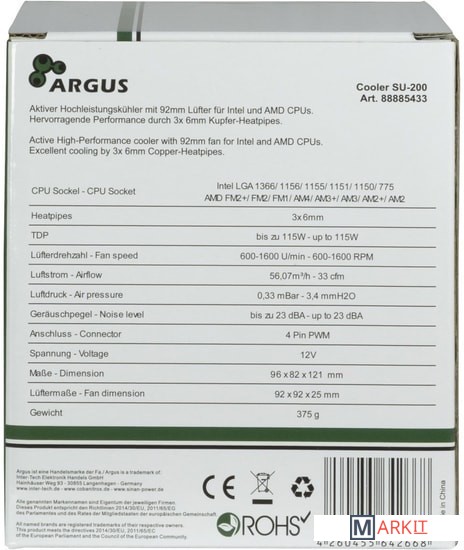 Markit » Системы охлаждения » Кулер для процессора Inter-Tech Argus SU-200