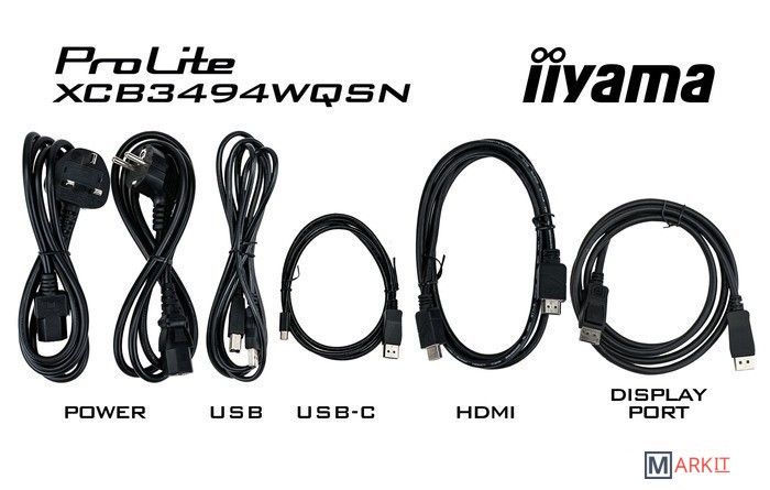 - кабель HDMI- кабель DisplayPort- кабель USB Type-C- кабель USB Type-A- кабель питания |