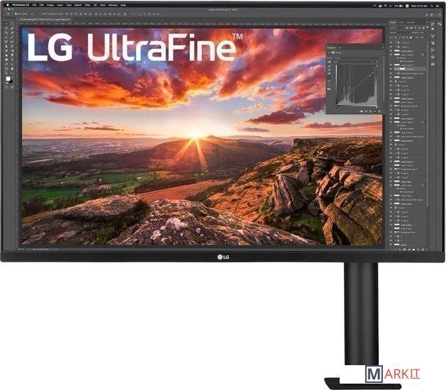 LG 32UN880-B - 31,5-дюймовый монитор IPS с разрешением 3840x2160 пикселей. Особенность монитора в его подставке со струбциной, которая закрепляется на краю столешницы, высвобождая место для других вещей. Конструкция подставки обеспечивает регулировку по высоте на 130 мм, углу наклона в пределах ±25° и углу поворота в пределах ±280°. Экран можно сдвигать влево и вправо относительно подставки, приближать к пользователю и отдалять от него. Возможен также перевод в портретный режим и обратно.