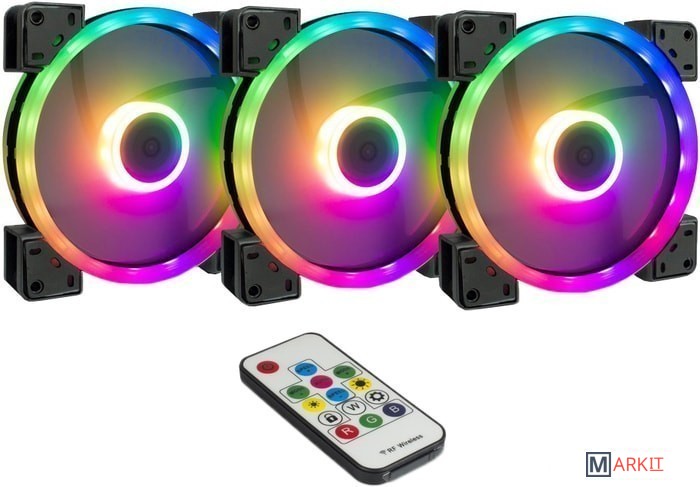 Подключение вентиляторов к контроллеру - 4 pin.2 pin разъем для подключения блока управления RGB к кнопке перезагрузки на корпусе ПК.3 pin для подключения к разъему 5V RGB на материнской плате для синхронного управления всеми светодиодами RGB.В комплекте:3x вентилятора Argus RS-14 RGB LED;контроллер на 8 вентиляторов;2 светодиодные ленты для магнитного крепления в корпусе;пульт ДУ;3pin Y-образный кабель PWM;1x 50 см удлинительный кабель для вентилятора RGB;крепеж;документация.