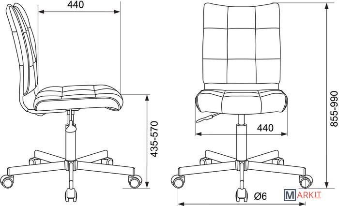 Колеса оснащены тормозом безопасности, реагирующим на изменение давления: стул не откатывается, когда вы садитесь или встаете.